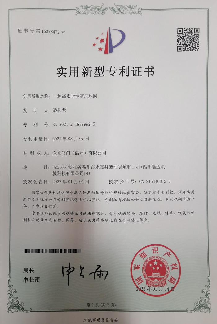 高密封性高壓球閥 實(shí)用新型專利證